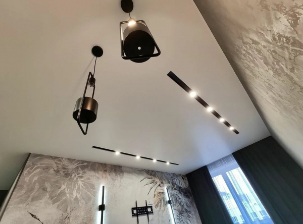 Расчёт цены потолка с трековой системой SLOTT в гостиной